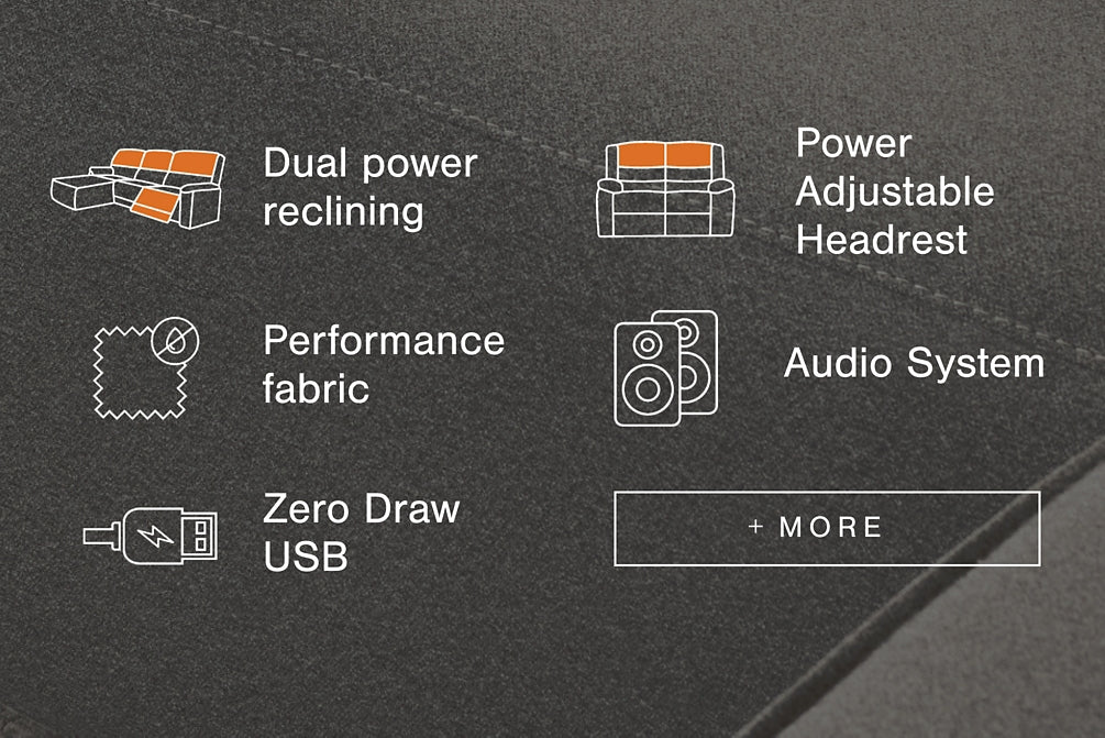 Looking cool and contemporary is great. But when it comes down to it, you’re all about low-maintenance lounging. With the performance fabric on this power reclining sectional with chaise, cleaning spills is a breeze. Its modular design caters to your ever-changing needs. And the audio consoles' built-in speakers with wireless connectivity turn your living room into an entertainment hub. It's proof that modern design and superb comfort go hand in hand.