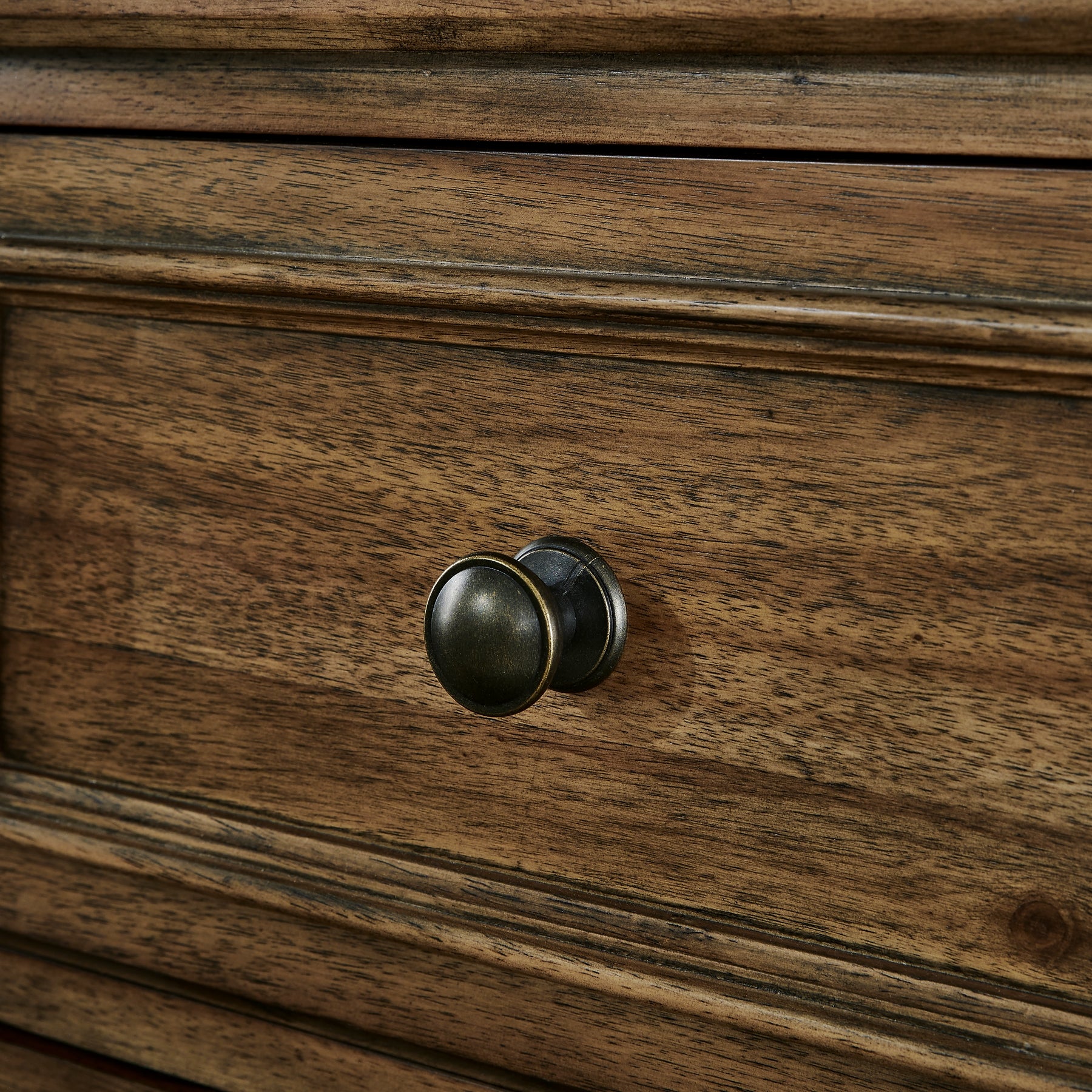 Details | Made with hardwood solids, veneers and MDF substrates, Brown finish, Oil-rubbed bronze-tone hardware, 2 drawers with fully finished interior, felt bottom, dovetail construction and ball-bearing side glides, 2 glass door cabinets, each with an adjustable shelf, Open lower shelf, Assembly required | |