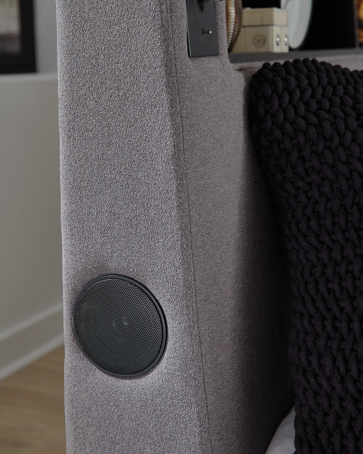 | Details | Includes upholstered headboard, footboard, rails and roll slats, Made with engineered wood frames, solid wood components and foam, Polyester upholstery, Multicolored ambient LED lighting in headboard and lower footboard rail, LED reading light with articulating arm on each side of bed, Bed does not require additional foundation/box spring; accommodates most zero clearance adjustable bases, Mattress available, sold separately, Power cord included; UL Listed, Assembly required | |